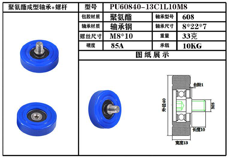MSM bearing blue polyurethane pulley silent wear resistant roller PU60840-13C1L10M8