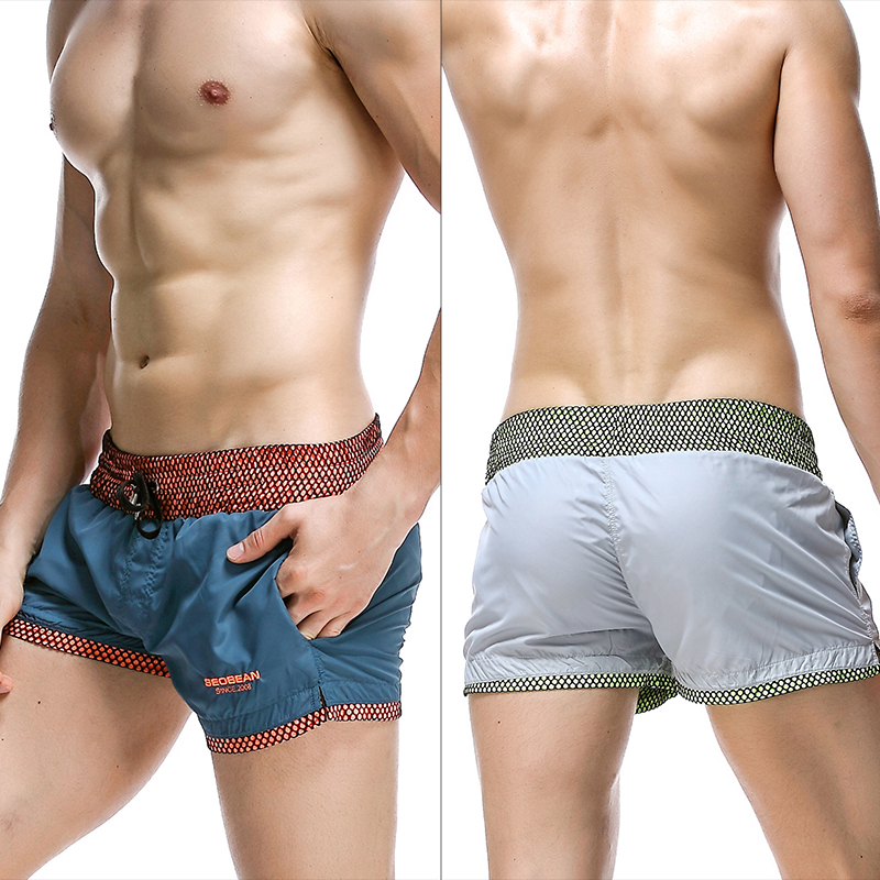 seobean sexy low-waist beach pants boxer swimming trunks quick-drying loose wide-waist seaside men's sports three-point shorts