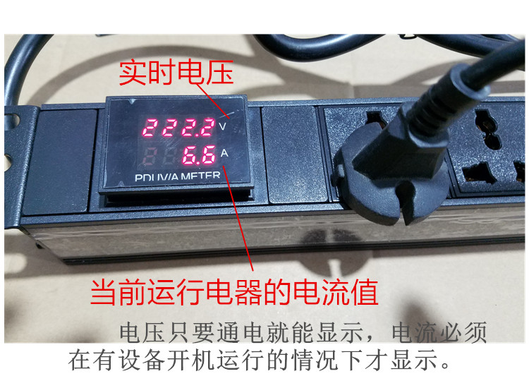 Cabinet pdu socket 7-bit 10A jack with switch current and voltage digital display power meter power wiring board