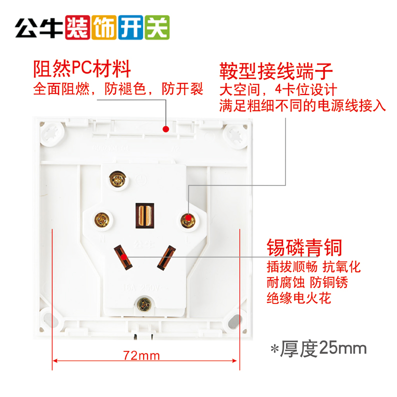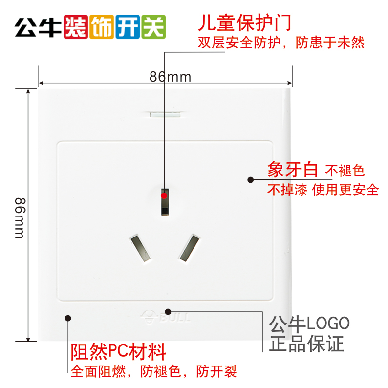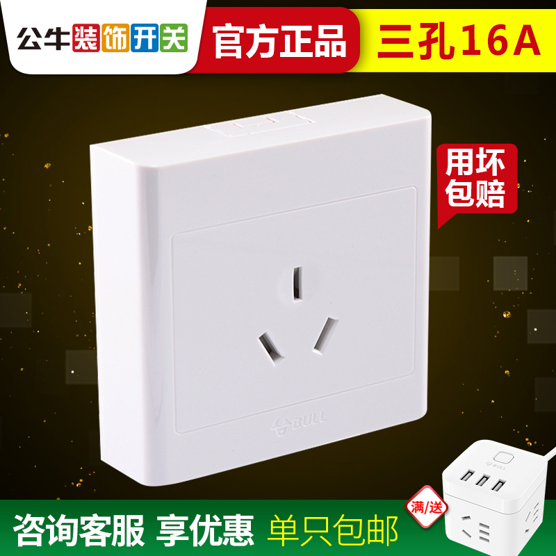 Bull surface-mounted switch socket three-hole socket 16A air conditioning 86 type high-power open line box 3-hole power panel