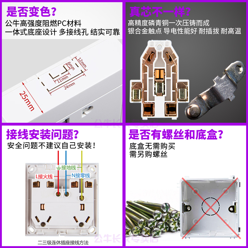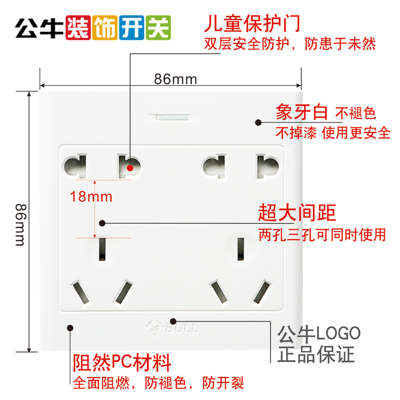 Bull surface-mounted switch socket 10-hole socket 10-hole wall power panel bright line box double 5-eye five-hole multi-purpose