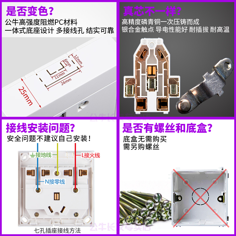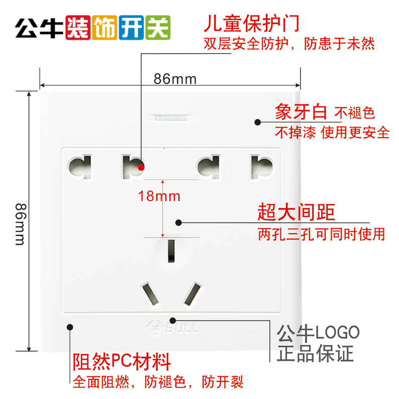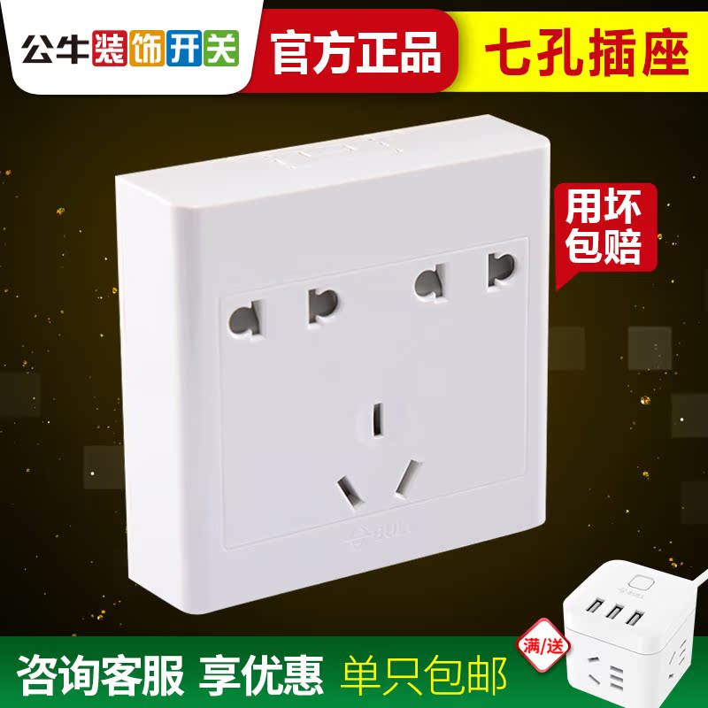 Bull surface-mounted switch socket 25-hole socket Wall 7-eye 7-hole multi-function open line box power supply seven-hole socket