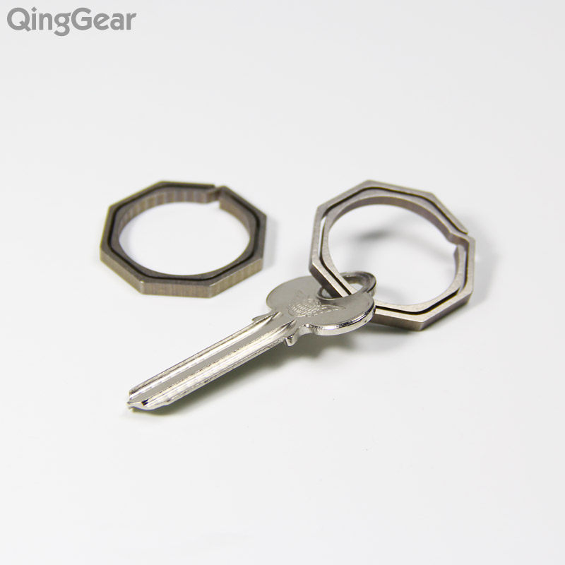 Large number of titanium alloy octagonal hanging buckle key ring CNC process double hook anti-lose and anti-rob key ring-Taobao