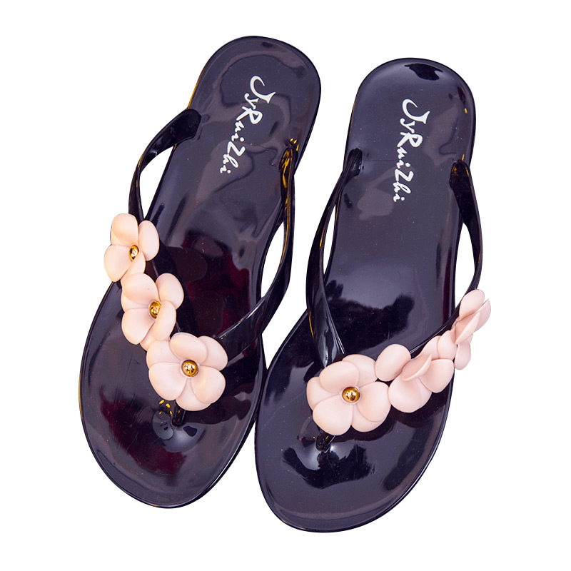 Summer outside sandals Slippers Women Fashion Flowers Beach Outside Korean version Flat bottom 100 hitch-herringbone Herringbone Tug Tide