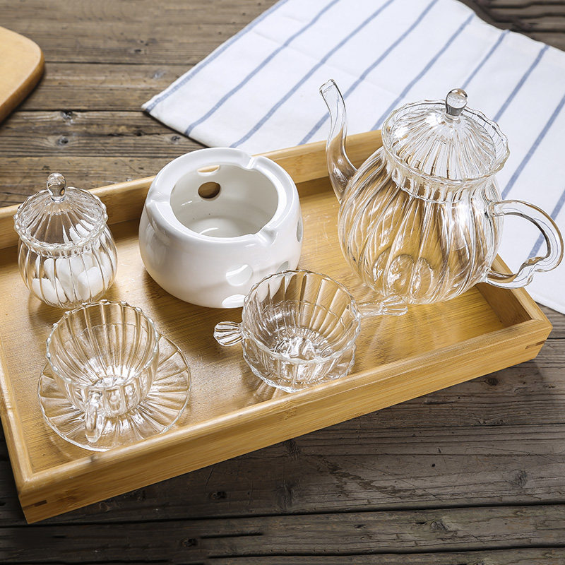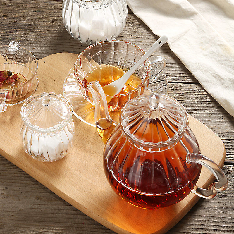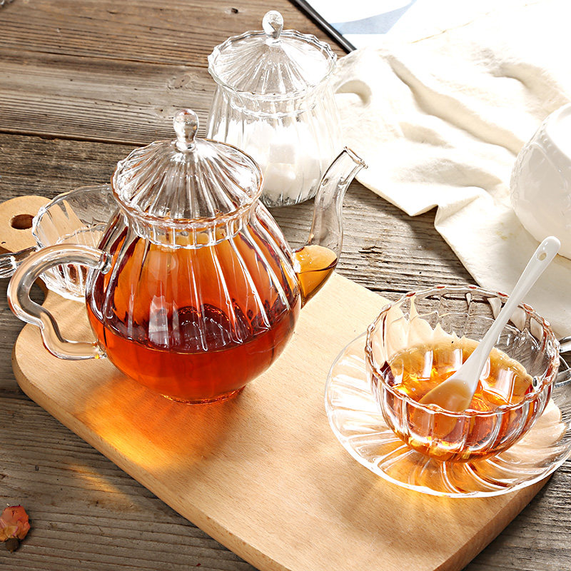 Creative retro glass cup juice cup striped coffee cup transparent glass coffee cup teapot can be heated