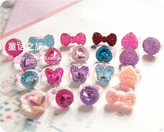 Children's baby girl little princess jewelry prize gift toy crystal rhinestone gem shiny plastic ring ring