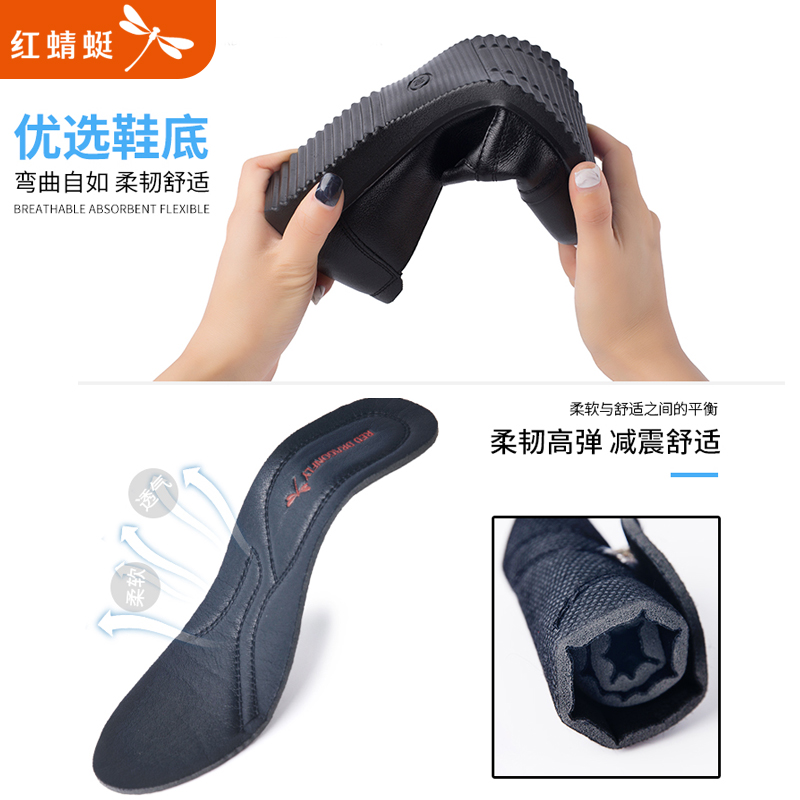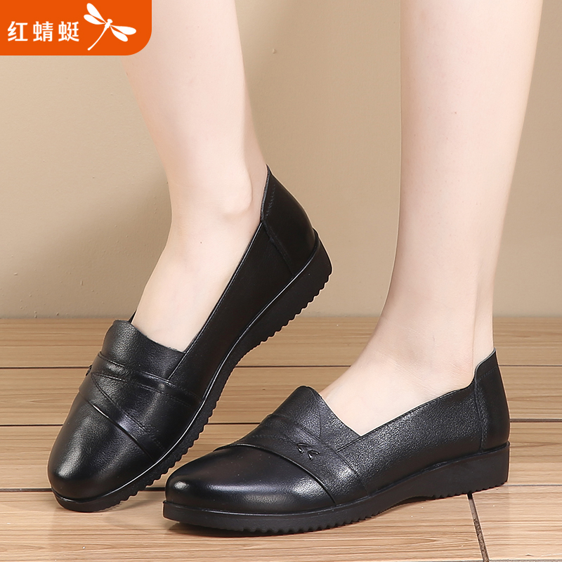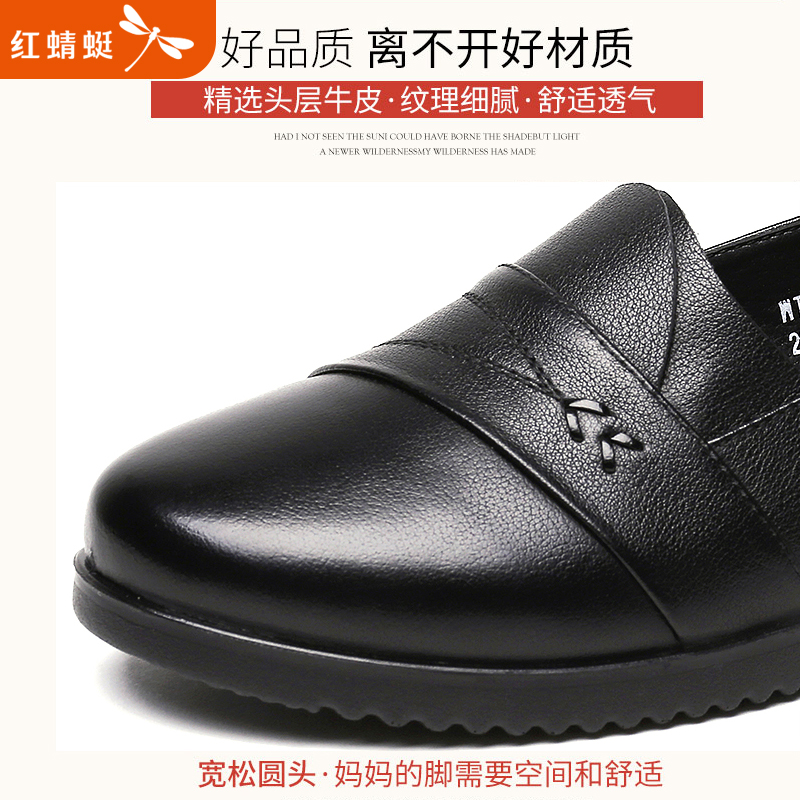 Red dragonfly leather women's shoes middle-aged and elderly soft-soled grandma leather shoes flat-bottomed mother shoes women's soft leather elderly single shoes