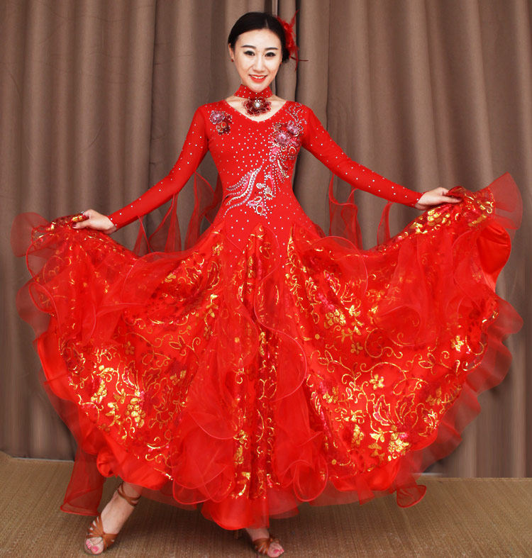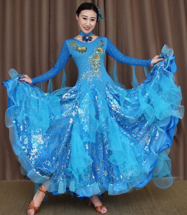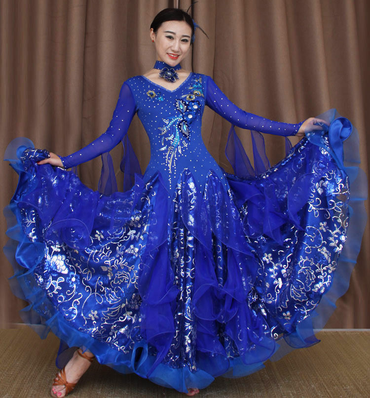New Inlaid Drilling National Mark Dance Competition Suits Morden Dance Dress Social Dance Waltz Big Swing Foreign Dress Set to perform a dress