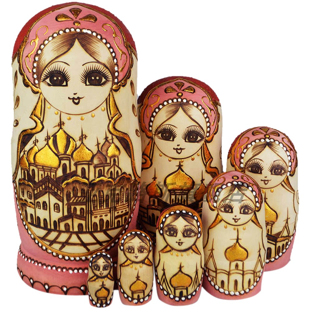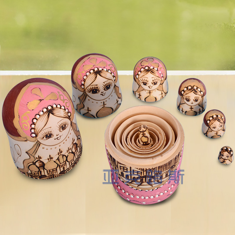 Aklus hand drawn business gift birthday gift basswood brand matryoshka doll 7 layer 0707
