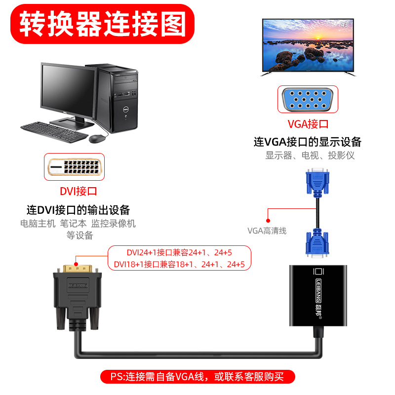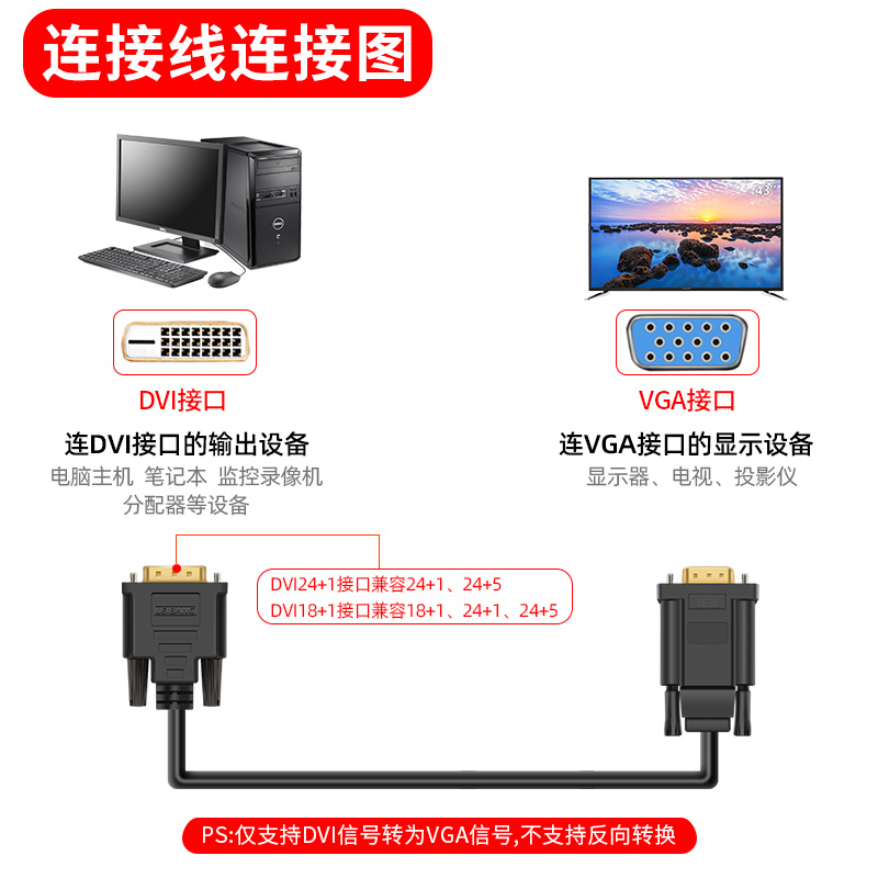 dvi turn VGA line 24 1 high definition vda conversion joint vja computer desktop host graphics card display connection line