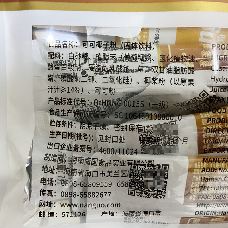 Hainan Special Produce South China Cocoa Coconut Powder 306 gr Instant Instant Cocoa Coconut Milk Powder intense and intense