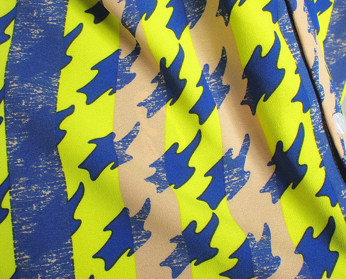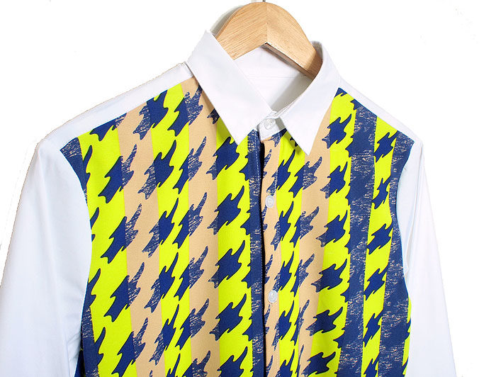 Tide Tutorial] Fall new fluorescent Thousand Bird Lattice Abstract Printed Stripes Splicing Men's Shirt Casual Lining
