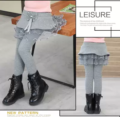 Spring and autumn girls plus velvet inner pants Children's medium and large children's clothing pants skirt fake two-piece trousers winter plus velvet thickening