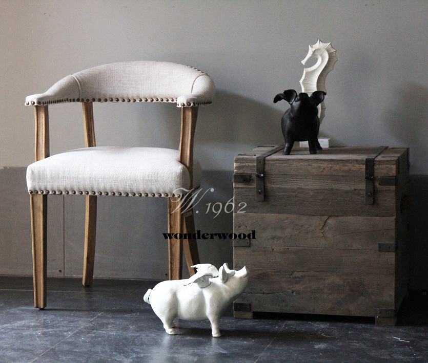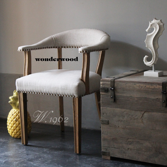 (American hot model) w1962 export white oak linen soft wrapped solid wood dining chair Armchair dining table chair desk chair
