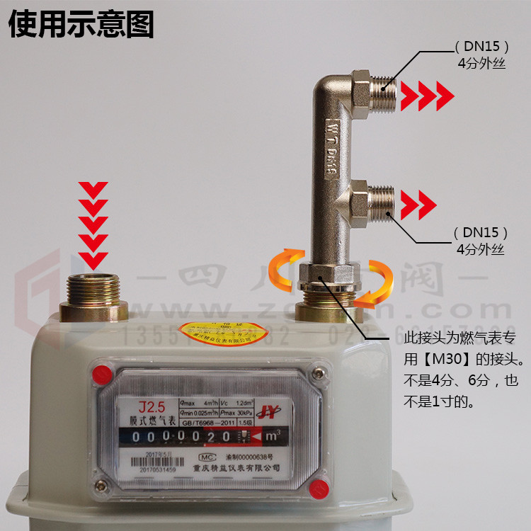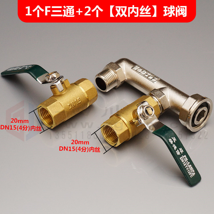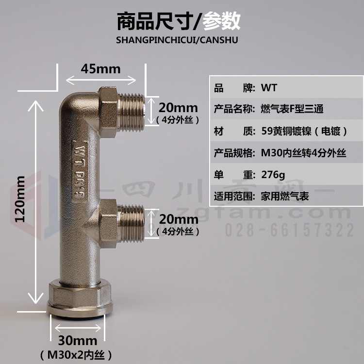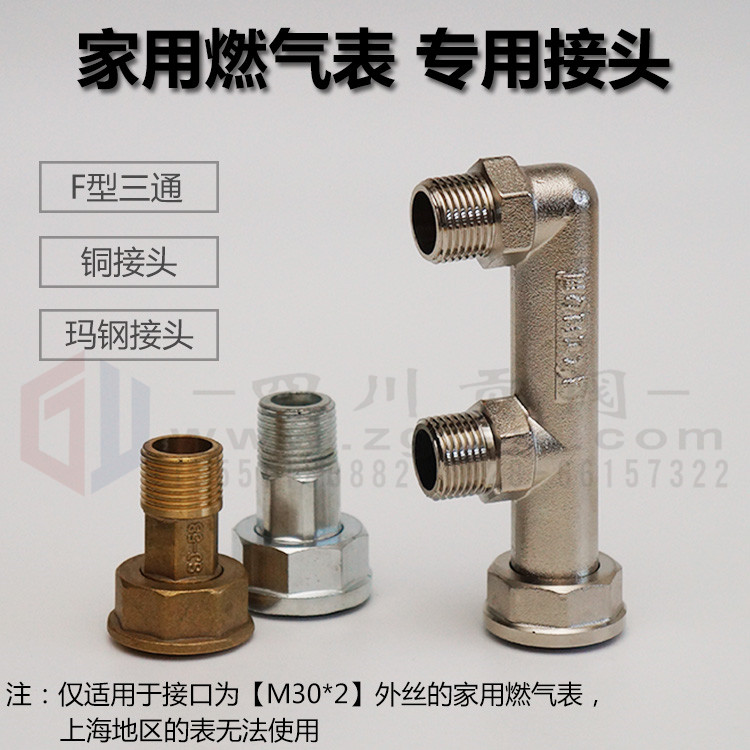 4-division gas meter F type full copper tee M30 external thread connector gas meter 4 sub external thread three-way splitter