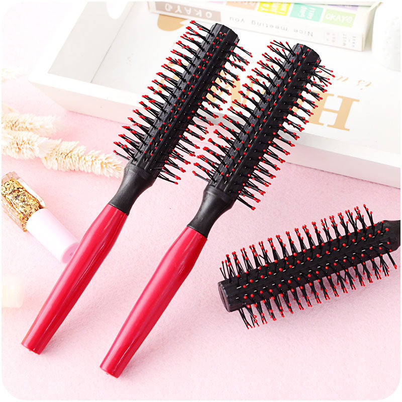 South Korea Curly Hair Comb Roll Comb Blow Straight Haired Pears Flower Head Inner Button Hair Salon Hairdresser Hairdresser Special Styling Cylinder Comb