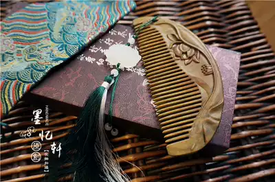 Mo Yixuan "He Yue" double-sided carved lettering Lotus purple sandalwood green sandalwood comb Mother's Day gift