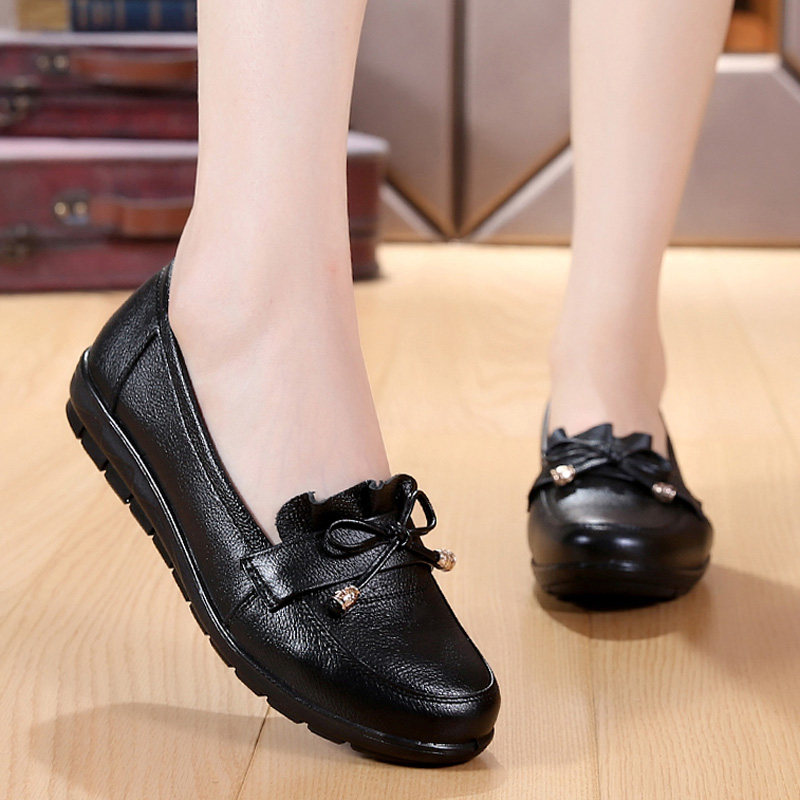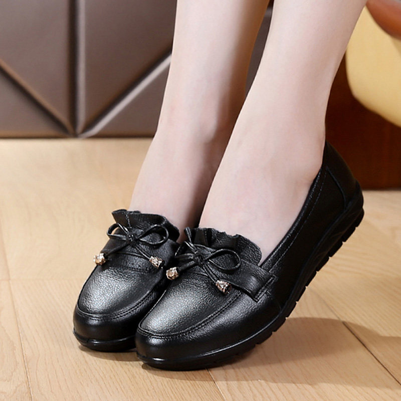 Mother's shoes soft sole leather single shoes 40-year-old elderly leather shoes middle-aged women's shoes flat bottom 50 middle-aged and elderly women's shoes spring and autumn