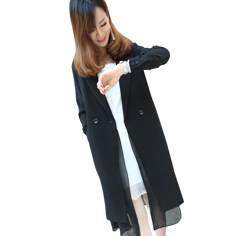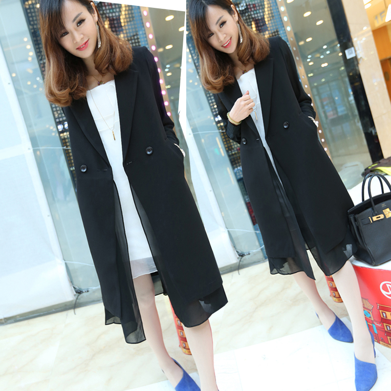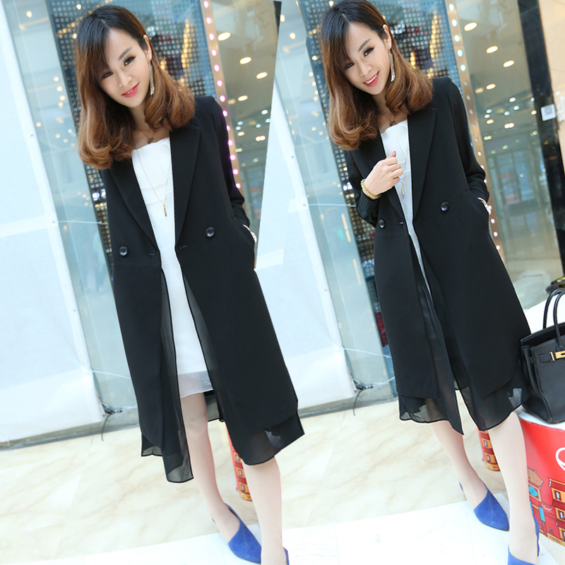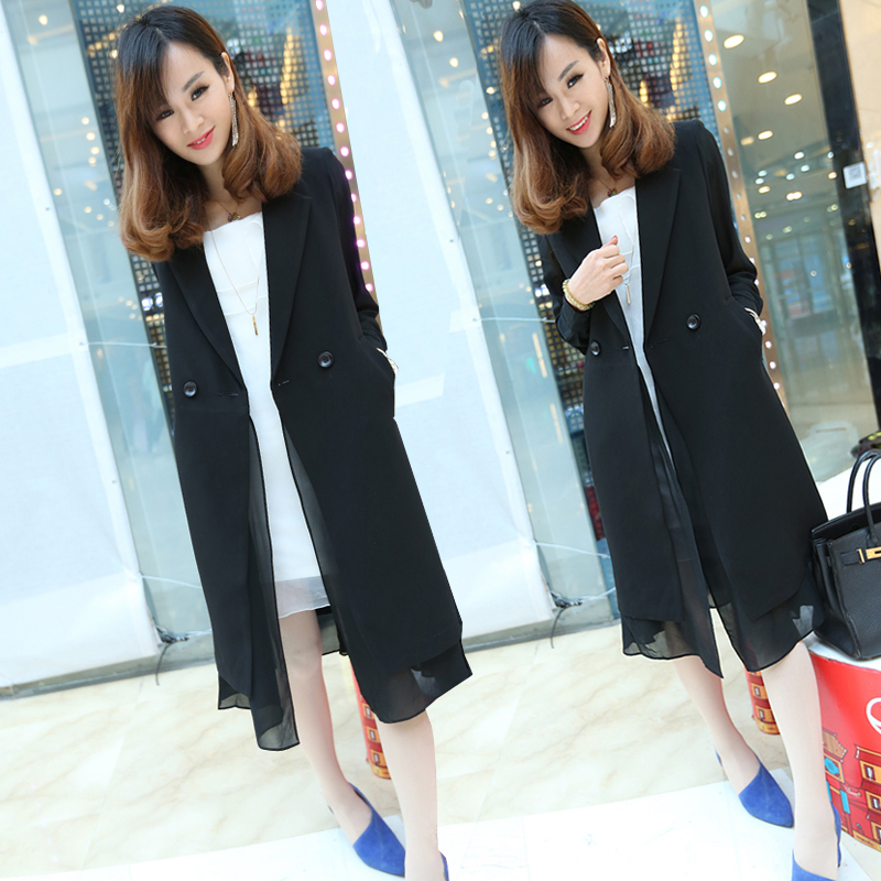 Chiffon stitching trench coat women's mid-length temperament suit jacket 2021 spring and autumn thin section large size women's suit coat