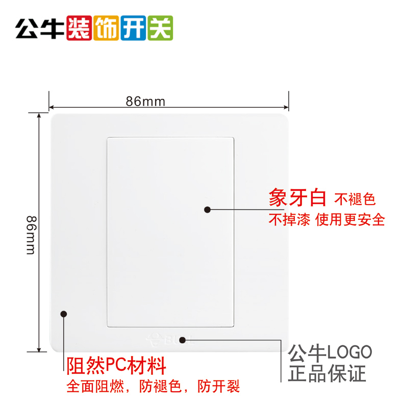 Bull switch socket blank concealed wall type 86 universal fireproof panel socket cover plate empty panel white cover plate