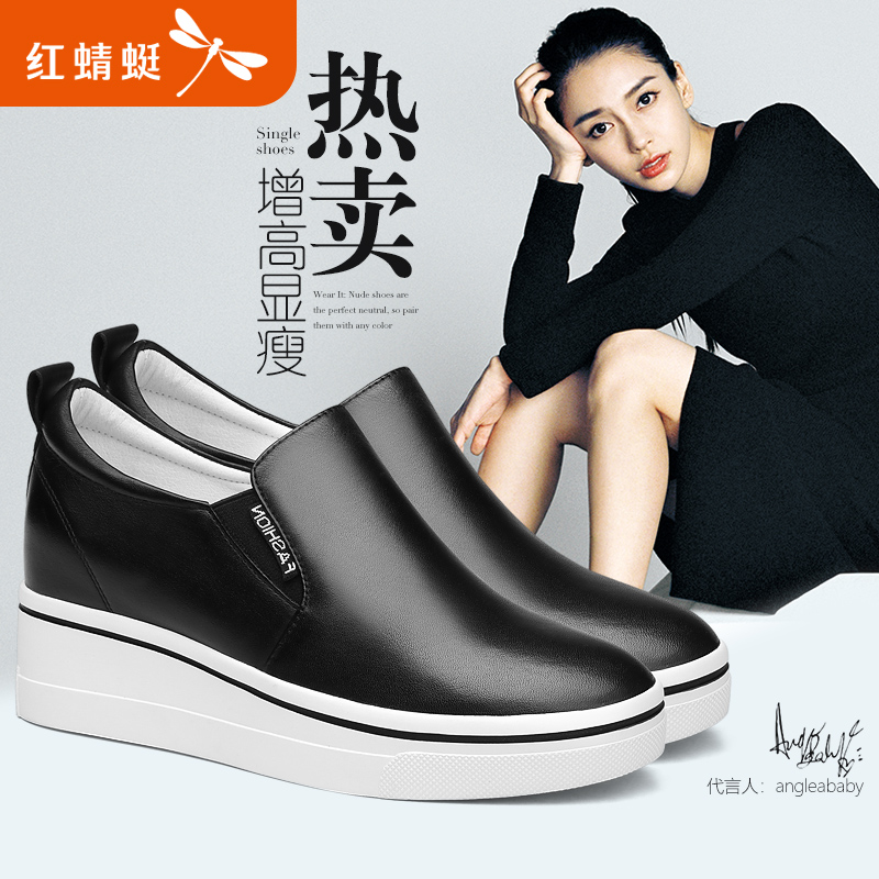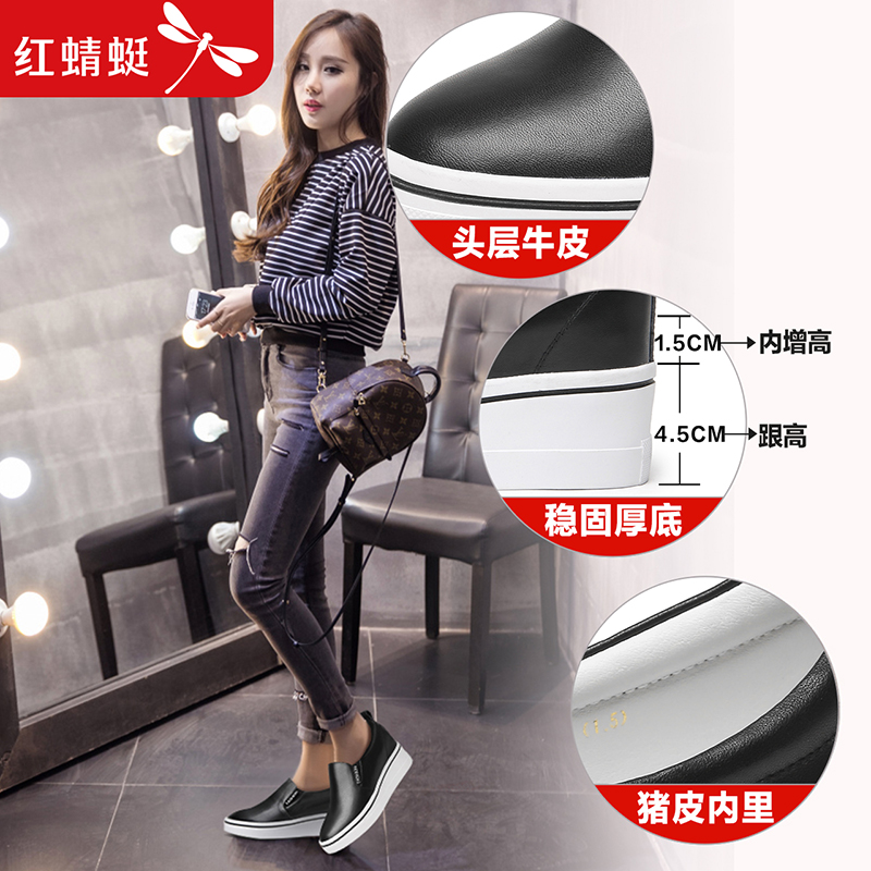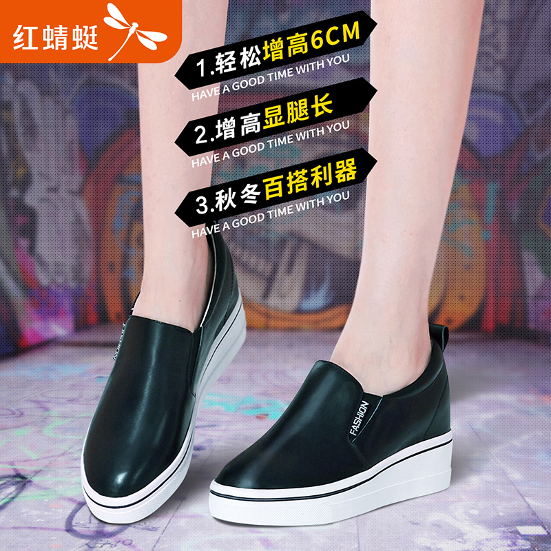 Red dragonfly leather casual small white shoes women's autumn new style heightening and thin women's shoes wedge heel inner heightening women's shoes
