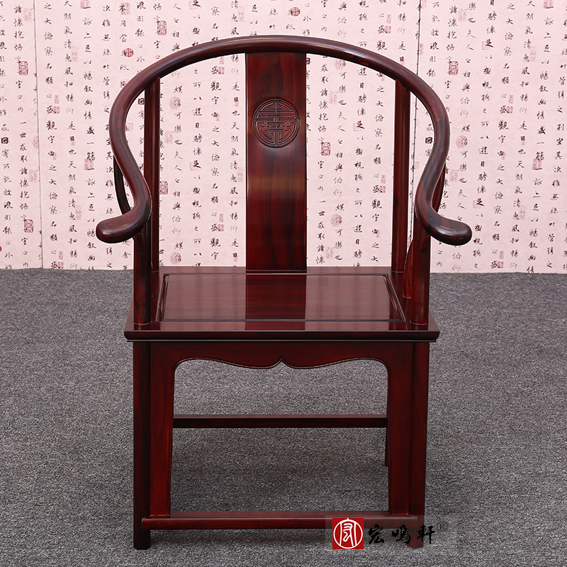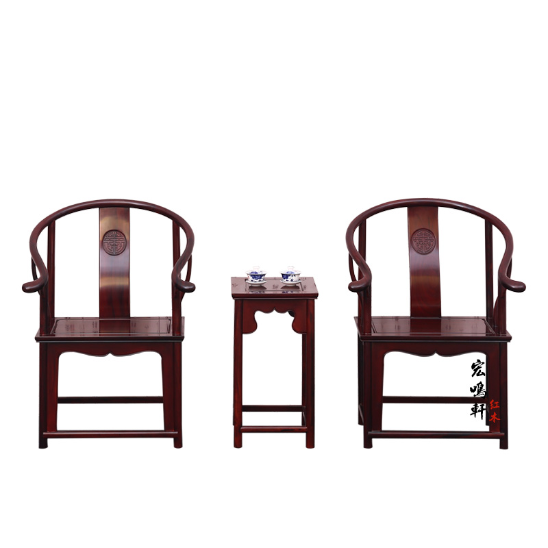 Macro Mingxuan Red wood furniture ring chair Chinese solid wood Taizist chair imitation ancient tea chair South American acid branch Leisure chair Three sets