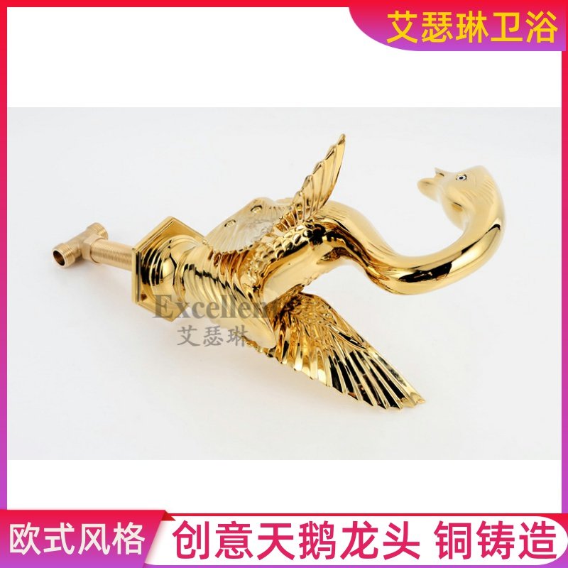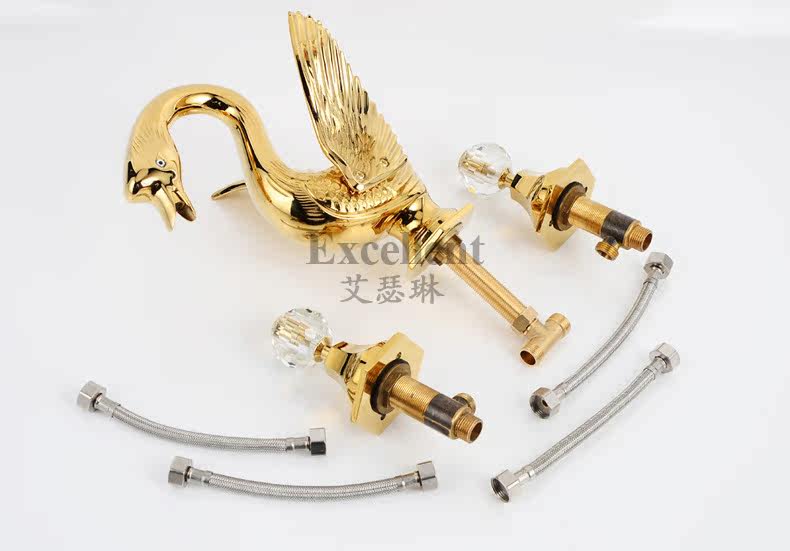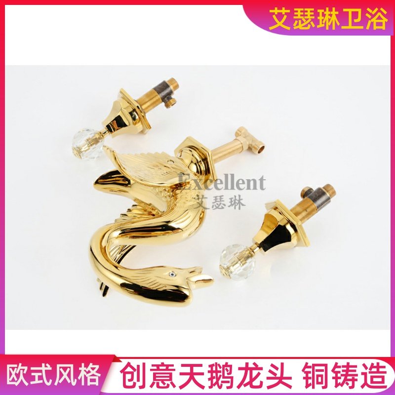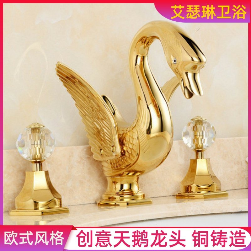 High-end atmospheric crystal handle Swan washbasin faucet Full copper gold faucet Swan washbasin three-hole faucet