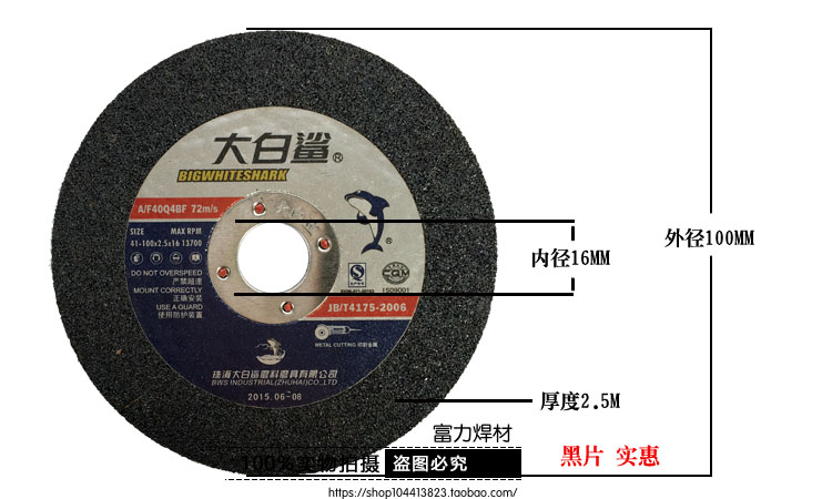 Great white shark grinding wheel sheet 100 * 2 5 * 16 cut cut sheet green sheet Chopped Dual-use Resin Polished Sheet