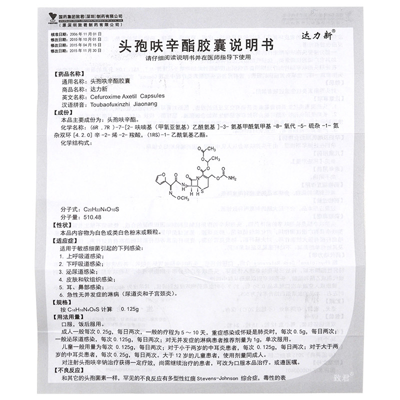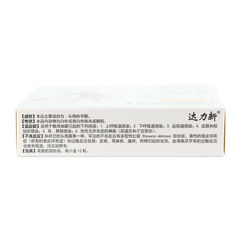 Dally new Dally new head cefuroxime capsule 0125g * 12 grain case up and down Suction Tract Urinary System Skin Soft Tissue Ear Nose Infection Acute no complications gonorrhoea furoxime