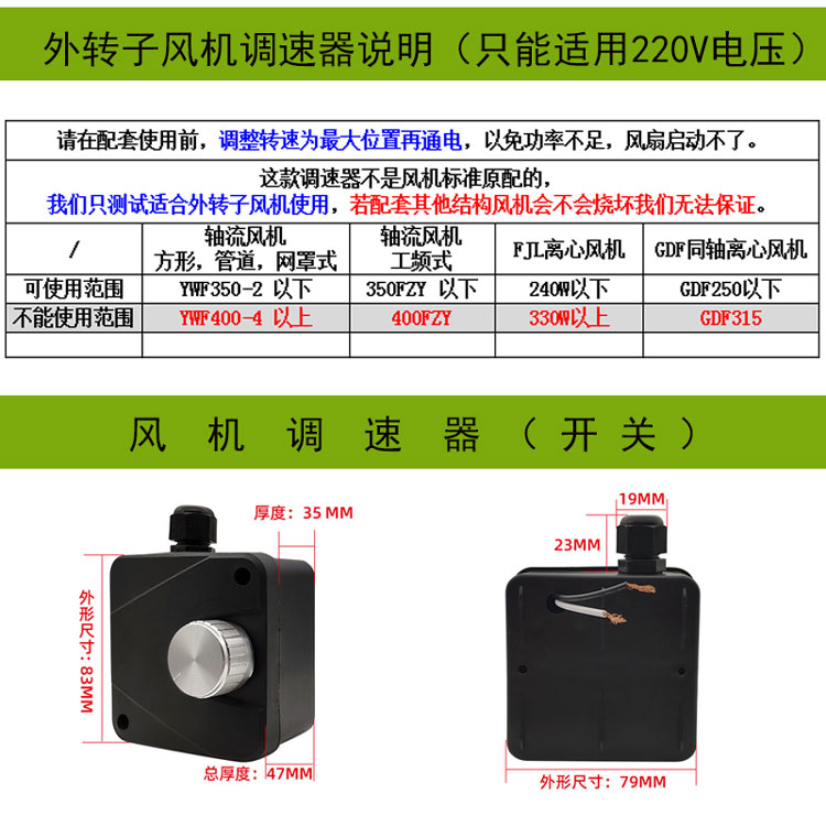 YWF4E-350 (220V) Medium speed YWF4D-350 (380V) Medium speed YWF2E-350 (220V) High speed outer rotor