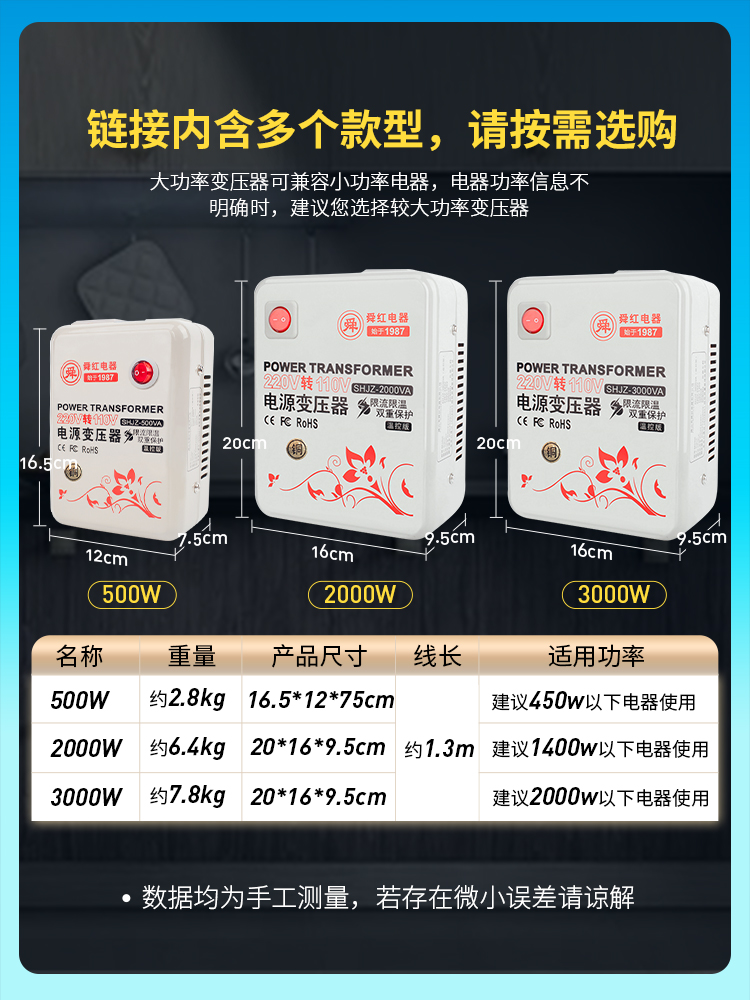 Pure copper 500W (US electrical appliances China) 220v to 110v Pure copper 500W (Japanese appliances China) 220v to 100v pure copper 500W (China electric power)