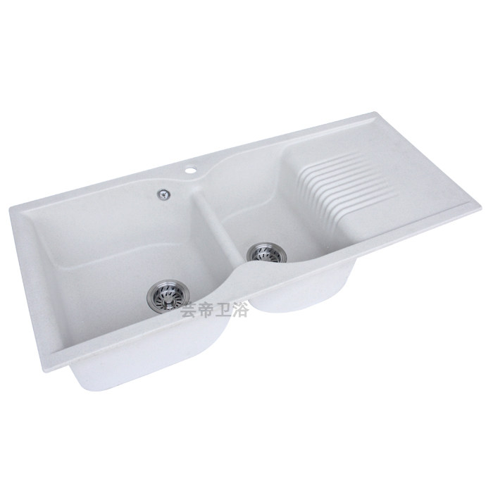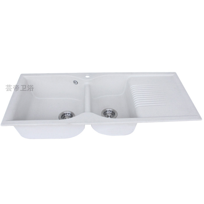 High-end dishwashing sink quartz stone drainage pod granite water basin large double sink with plate faucet package