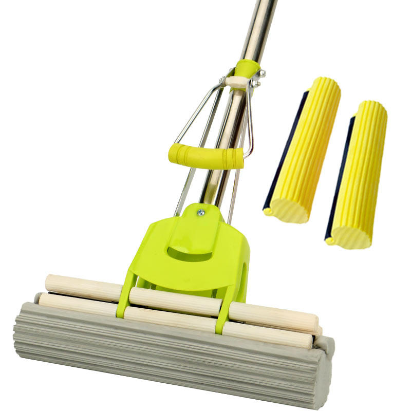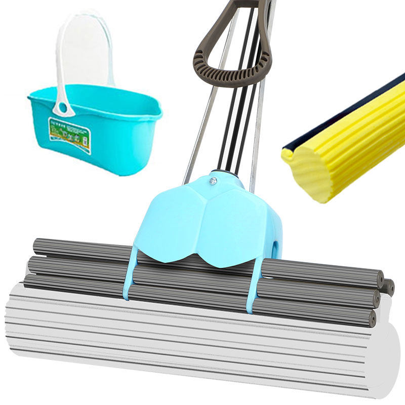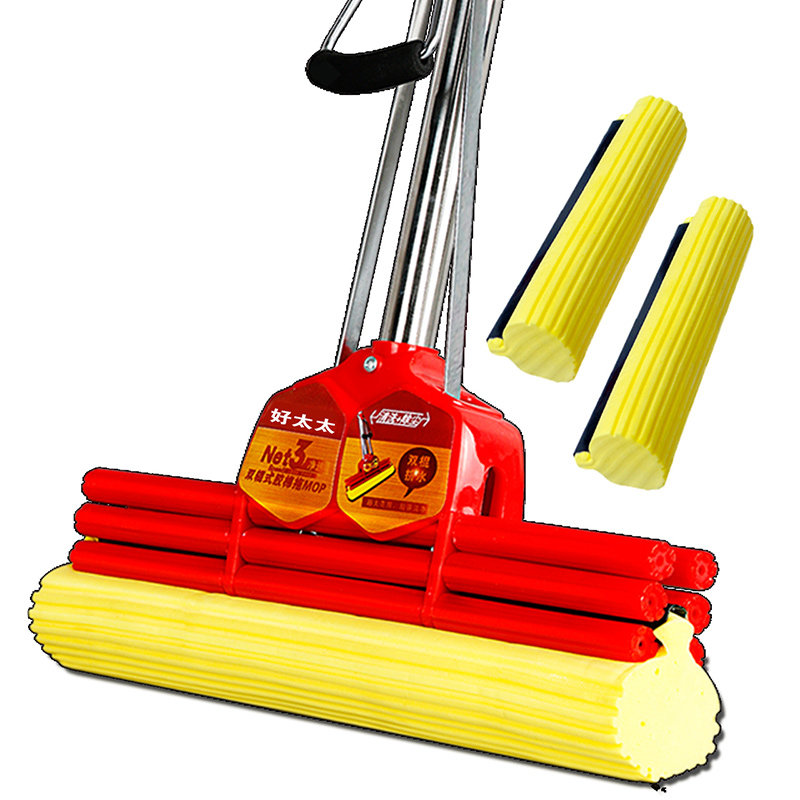 Good wife 38cm large stainless steel roller type rubber cotton absorbent sponge hands-free washing squeeze water mop household