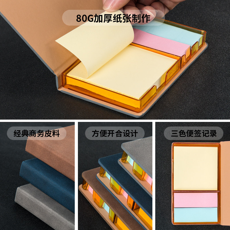 Creative multi-functional color retro PU leather post-it box storage box convenient environmental protection can tear non-sticky stickers n times note notes business office business card box wholesale custom logo