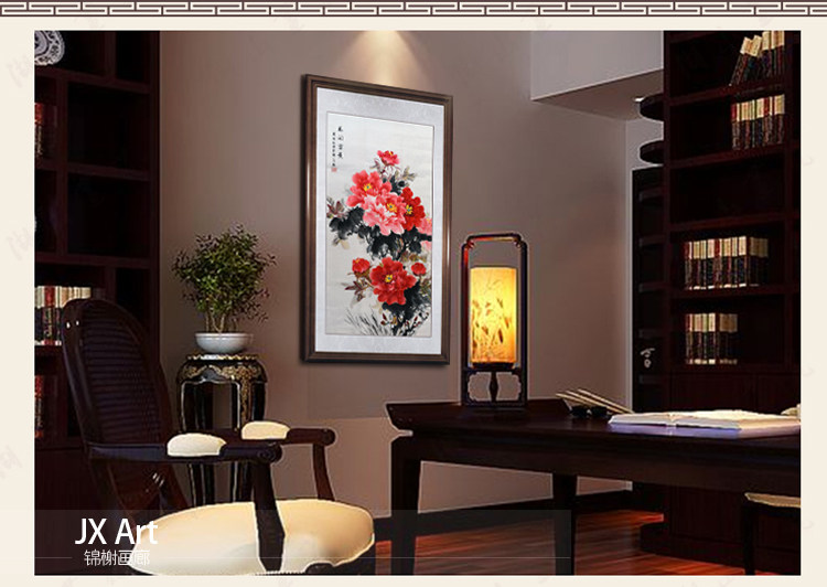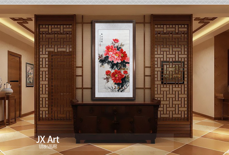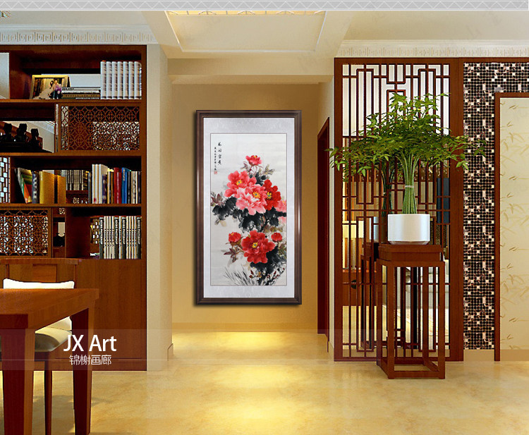 Hand-painted flowers and birds vertical porch decoration aisle hanging paintings corridor murals flowers blooming rich peony Chinese painting hand-painted