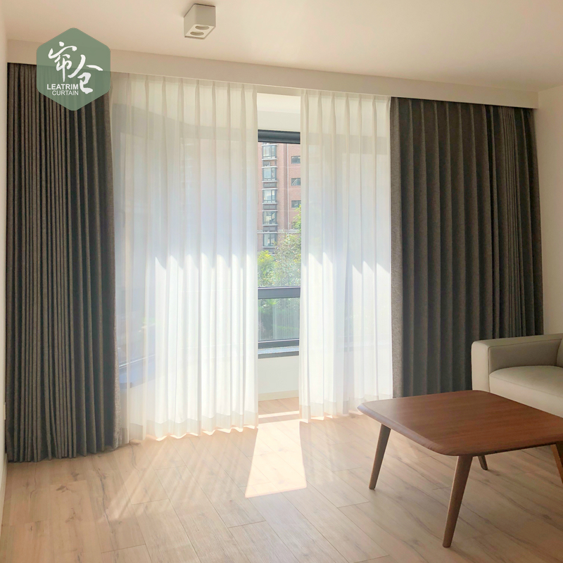 Curtain warehouse Japanese high temperature memory stereotyped curtain 2 8 meters Japanese minimalist environmental protection cotton linen texture blackout curtain customization