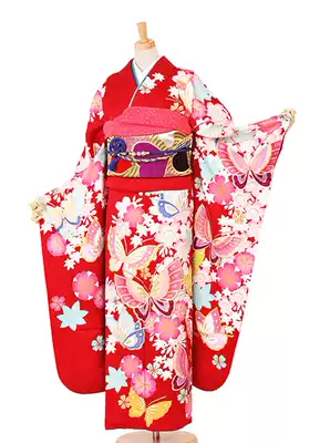 Kimono Cherry butterfly pattern red high imitation Japanese dress kimono non-cosplay made with traditional cutting