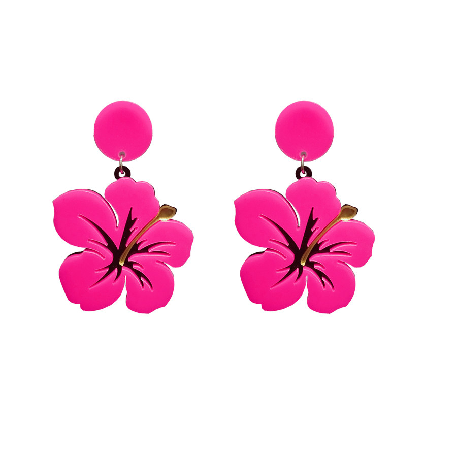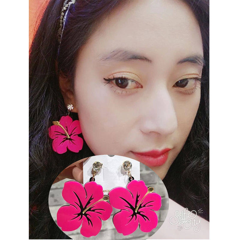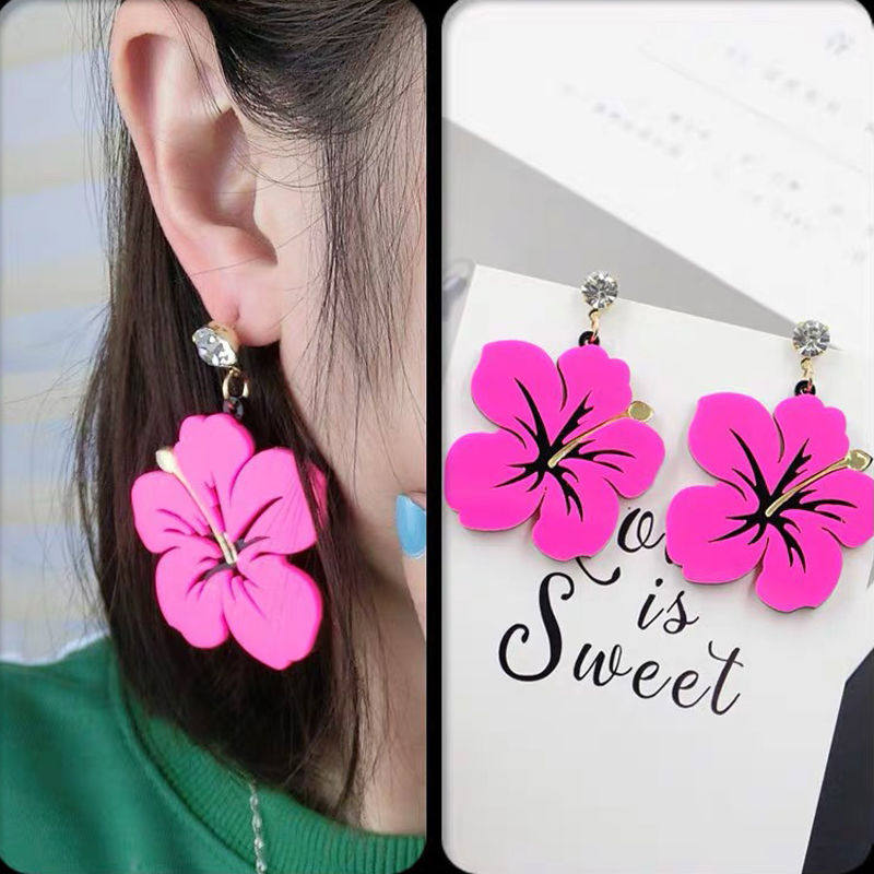 Seaside holiday style exaggerated rose red big flower earrings temperament Korean personality all-match ear needle net red earrings female