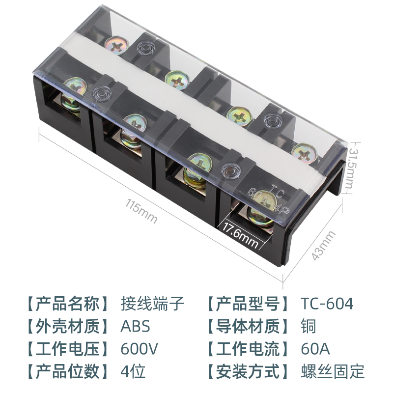 TC-604 (copper) 4-bit 60A high-current terminal block wiring row column wire connector