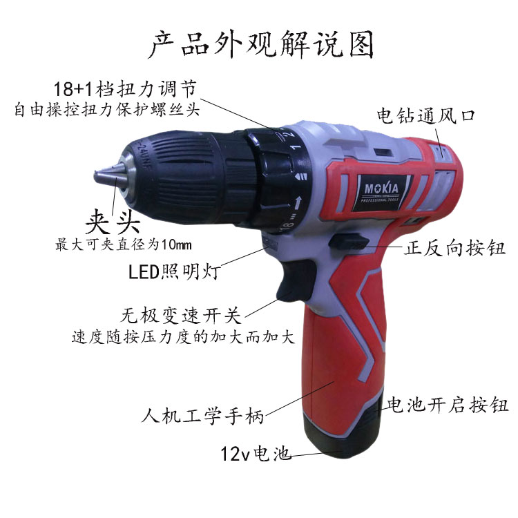 MOKIA12v Single Speed Lithium Electric Electric Drill Screwdriver Electric Drill Electric Drill Electric Screw Driver Home Mini Drill