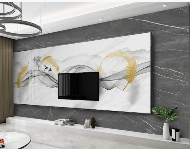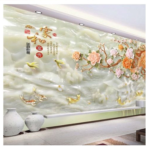 Modern Chinese TV sofa background wall home and rich living room rock board large board TV wall ceramic tile film and television wall