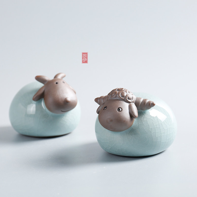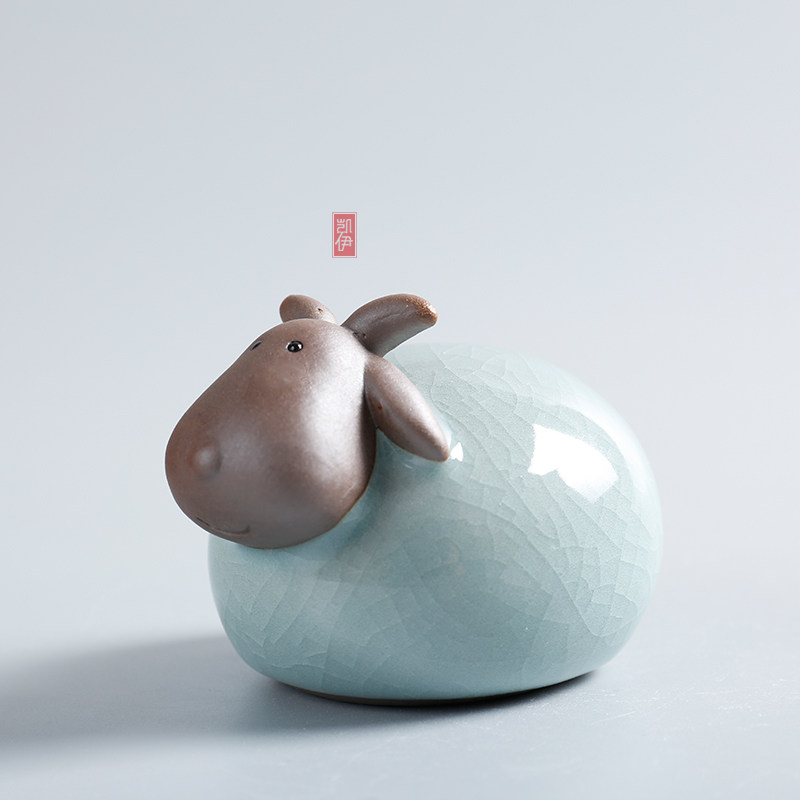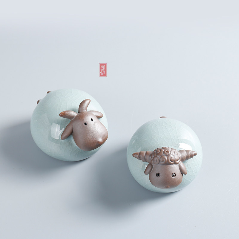 Kaiyi new brother kiln tea pet cute cow and sheep tea ceremony tea play ornaments open piece Brother Kiln tea pet auspicious tea play