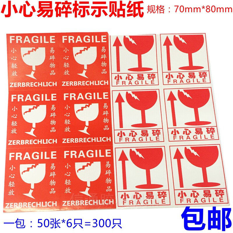 Chinese and English are careful to stick stickers 70mm*80mm express Taobao warning label label