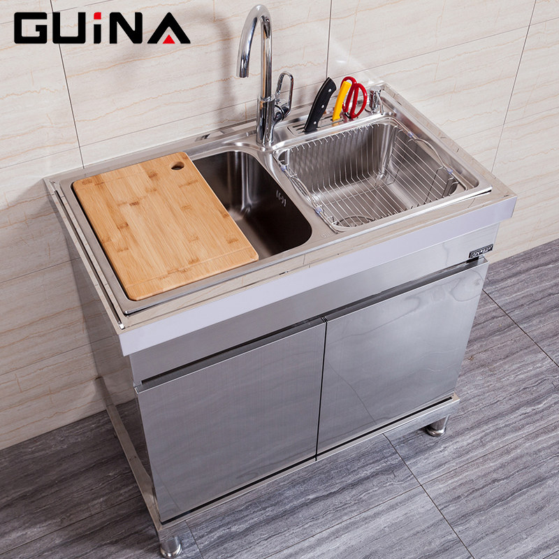 Guina Integrated Multifunction Sink Cabinet Ground Simple Integral Cabinet Laundry Pool Double Sink 304 Stainless Steel Laundry Cabinet