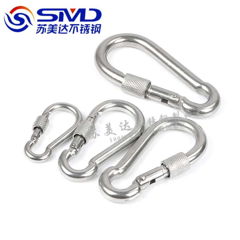 304 stainless steel even cap spring hook hiking buckle Insurance hook Safety buckle Even cap opening ring chain buckle