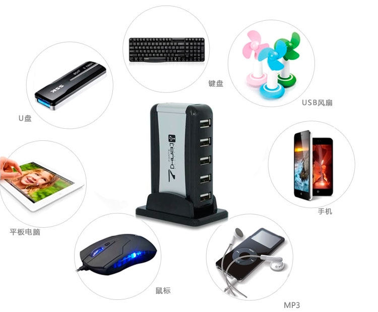 USB HUB 7 mouth HUB with external power supply vertical 7-mouth HUB USB extension cord 7-mouth