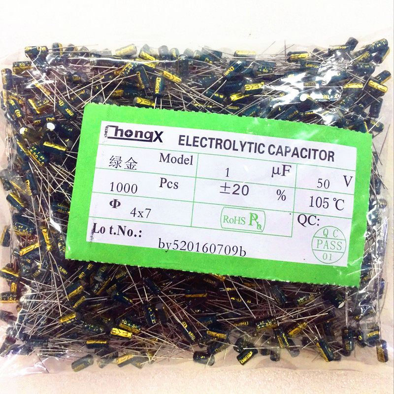 50V1UF high frequency low resistance green gold long life high temperature resistance in-line electrolytic capacitor volume 4X7 1K=35 yuan