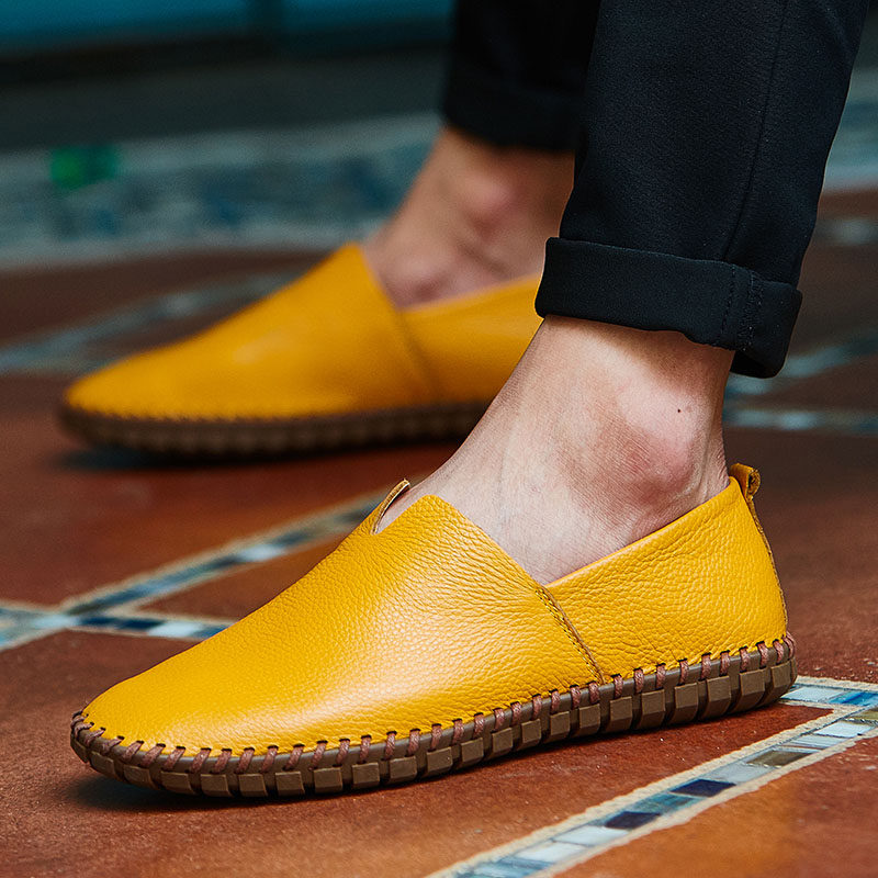 Men's leather white beanie shoes men's Korean board wild youth trend summer lazy soft bottom soft leather casual leather shoes