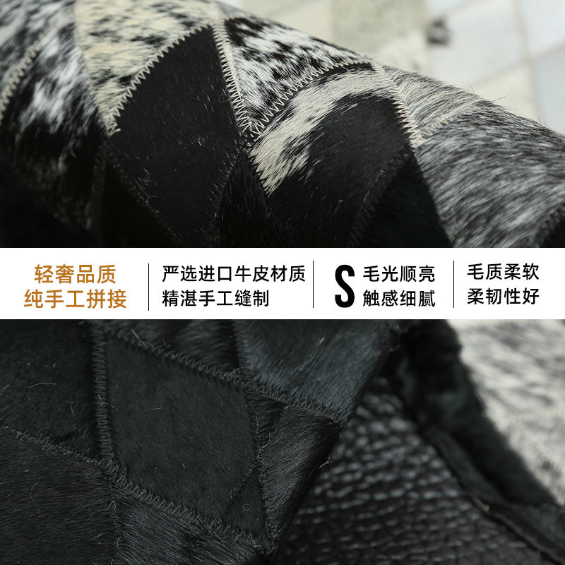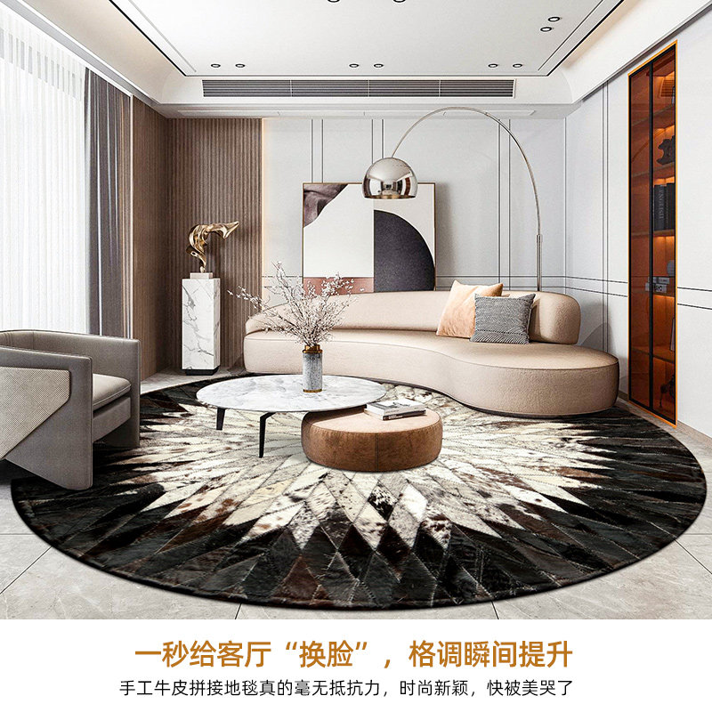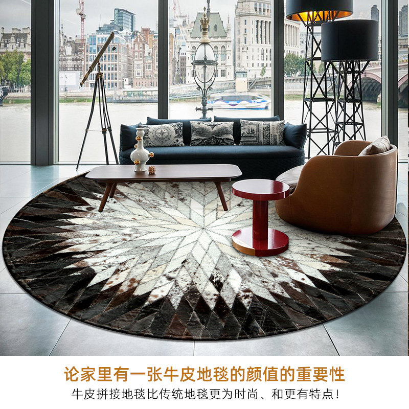 High-end extravagant hand-made cow leather splicing round rug book room computer chair living-room tea table floor cushion bedroom bedside blanket