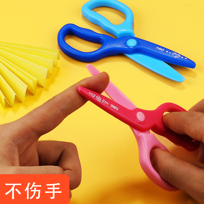 Able Children Safety Small Scissors Student Kindergarten Baby Handmade Diy Round Head Serrated Cut Paper Special Lace Scissors Small plastic without hurting hands with portable left hand scissors